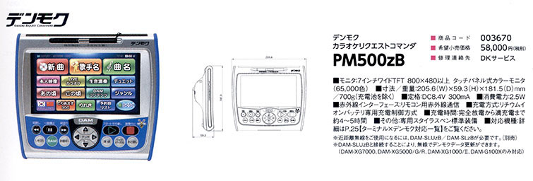 第一興商 デンモク DAM PMC25\お電話ください電子目次本を2台まで充電・データ更新が可能!対応機種:CM2000、CM1000、PM500zB、PM300zB、PM200zB、PM200、PM100系 |