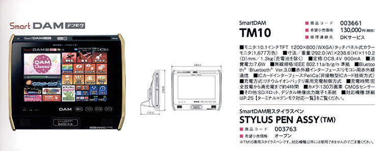 第一興商 デンモク SmartDAM TM10\お電話くださいスマートな操作を実現したタブレット端末。多彩な検索機能やお子様を飽きさせない仕掛けがいっぱいな「キッズデンモク」も楽しい。 |
